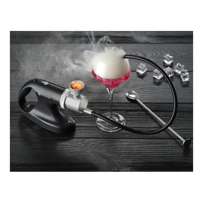 El tamaño pequeño de este ahumador, el bajo peso y la potencia de la batería convierten a la Pistola para Fumar en un ahumador portátil perfecto para cualquier chef molecular o barman que quiera hacer malabarismos con la mixología molecular.