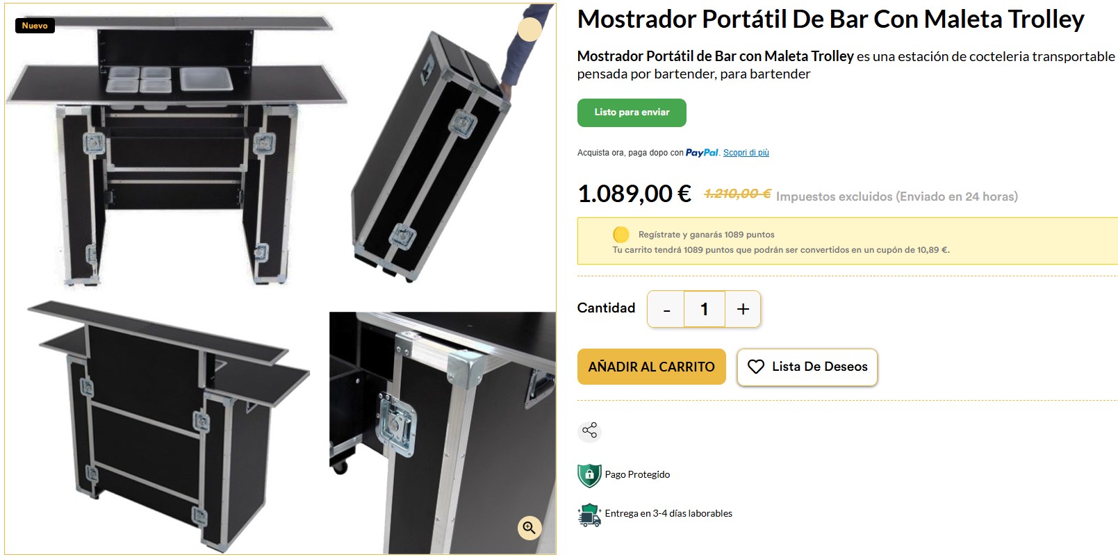 Bajamos a90 cm; portabilidad y manejabilidad son las palabras clave para esta herramienta; la elección ideal para bartenders profesionales que quieren independizarse conquistar mercado organización eventos.